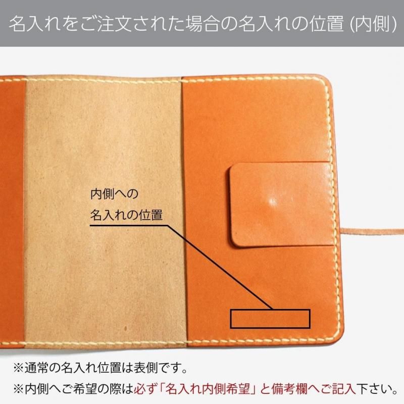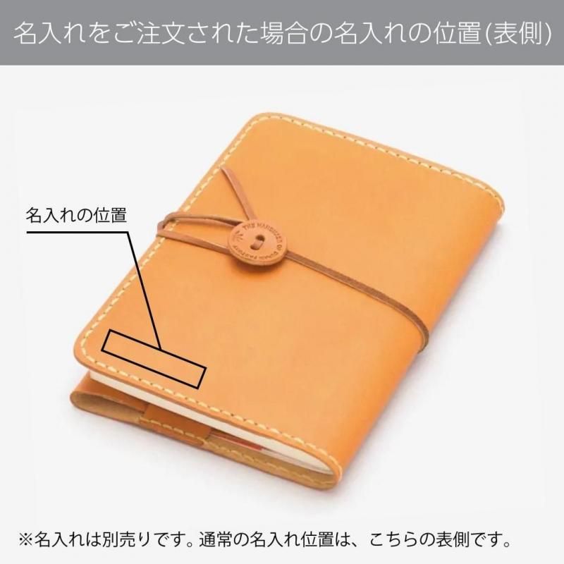 このブックカバーは名入れ(税込550円)に対応しています。レトロな風合いの活版印刷の版を使ったホットスタンプです。詳しくは名入れのご注文ページへ。
