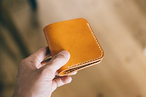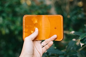 ナチュラルな革を手縫いした、ポケットサイズのシンプルな革財布