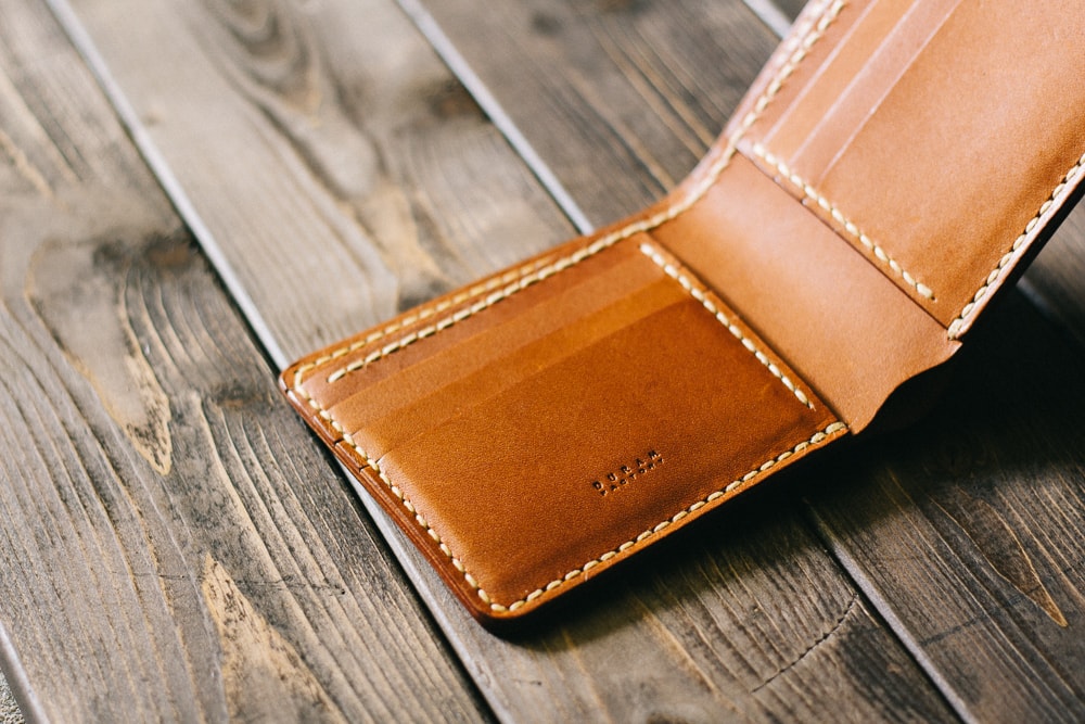 ドゥラムを始めた頃から少しずつ改良を重ねて来た、 シンプルな二つ折りの革財布です。麻糸のステッチは職人の手縫いによるもの。ひと針ひと針丁寧に仕上げています。